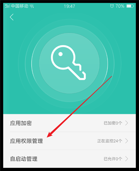 3、在权限隐私界面点击下图中箭头所指的“应用权限管理”。