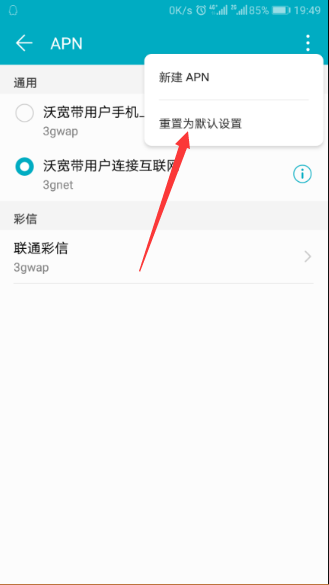 2.若以上操作后仍无法上网,建议重置手机上网参数:设置-移动网络-接入点名称-更多-重置为默认设置。