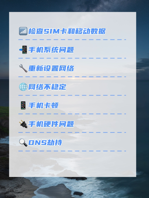 3.更换其他SIM卡或换个时间段尝试,排除网络问题