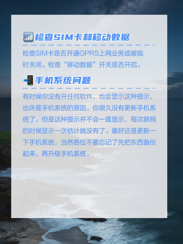 ????检查SIM卡和移动数据