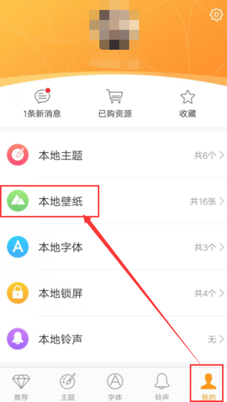 3、在“我的”中进入本地壁纸