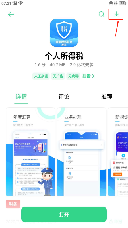 2、然后点击:个人所得税APP,进入下载界面,如下图所示: