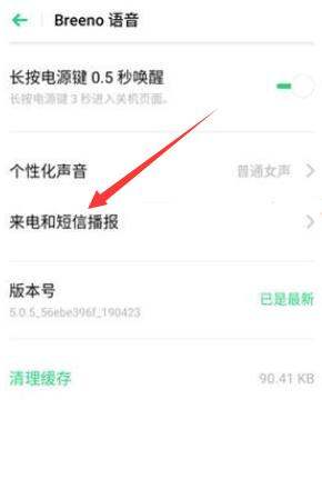 找到breeno语音选项进入,来电和短信播报关闭即可。