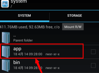 接着打开到/system/app位置,可以看到里面有众多的apk程序。