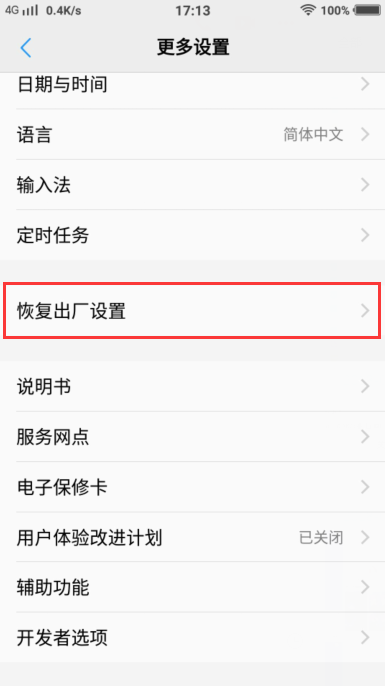 五、若排除不是对方的因素,建议进入手机设置--更多设置--恢复出厂设置--还原所有设置(此操作不会丢失手机中的数据)。