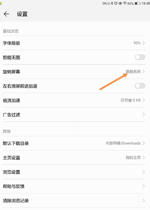 3、在设置里,点击“旋转屏幕”,如下图所示: