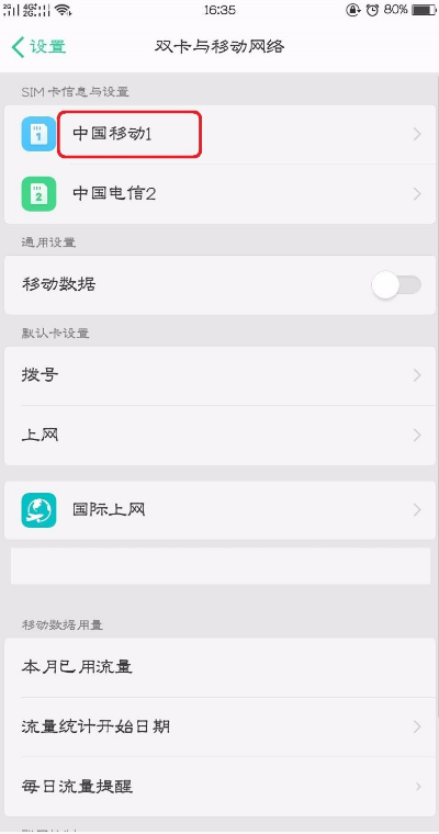 3、然后点击移动卡(如图);