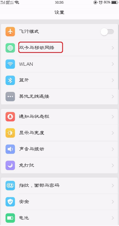 2、然后点击-双卡与移动网络(如图);