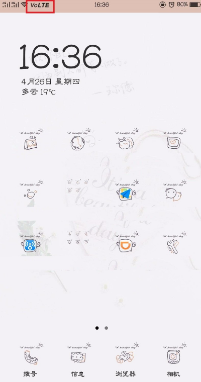 6、设置好后手机界面的顶部会显示VoLTE标志(如图)。