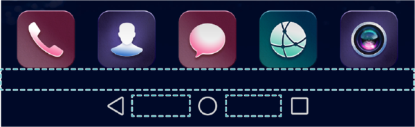 1,为了防止点击虚拟按键时误触到上方的应用图标,在虚拟按键的最上方设置了很小的触摸盲区。同时在三个导航栏中间也设置了触摸盲区的。