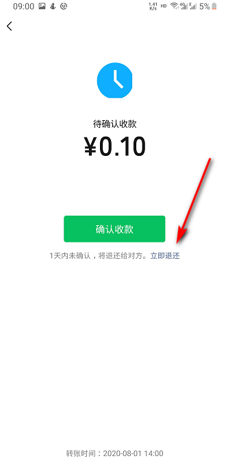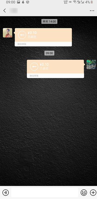 4、在好友的聊天页面中,就可以看到转账红包已退还,如下图所示。