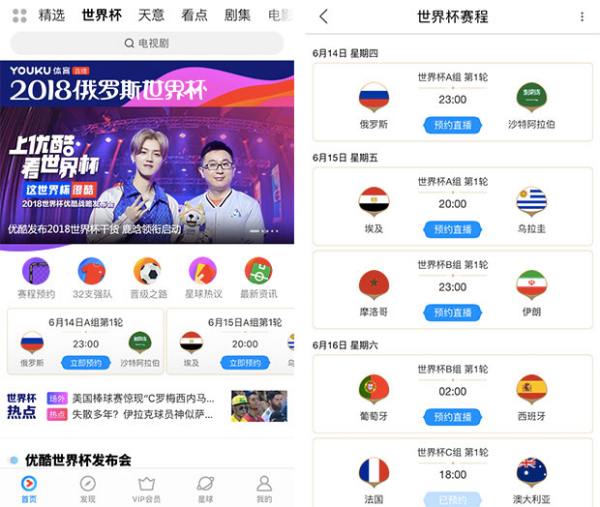 优点:尽管被阿里收购后,优酷的表现让人失望,但毕竟瘦死的骆驼比马大,比起央视影音、咪咕视频这些「国家队」,它的体验要好太多,赛程查看、直播预约、添加赛事至日历,这些才是球迷观看世界杯的刚需。