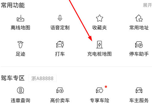 2、用户可以在常用功能中找到“充电桩地图”功能,此功能就是今天这篇文章所说的主角,对此进行点击即可,如下图所示: