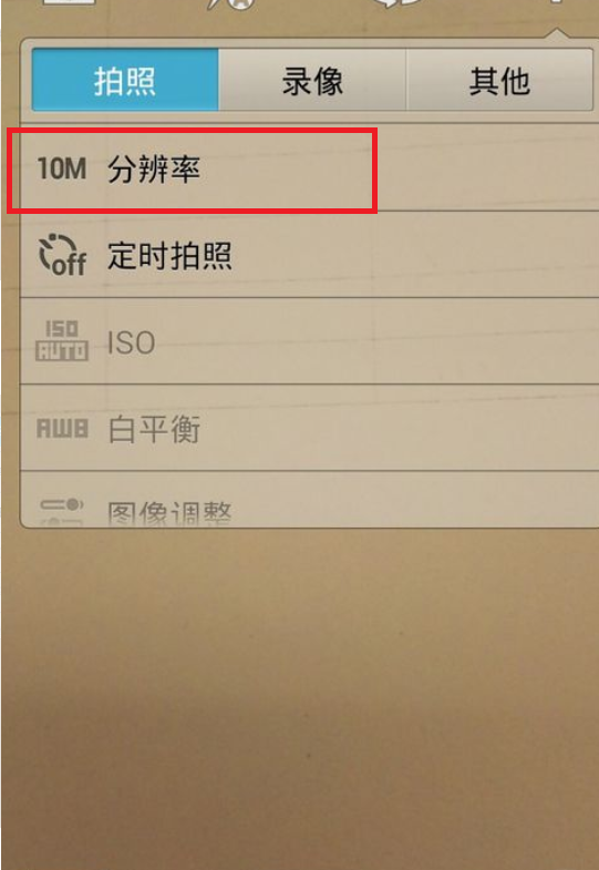 5、打开设置项后,进入分辨率设置。如果你想减少照片的内存占用,可以【1M分辨率】,拍出的照片小于1mb了。如下图所示: