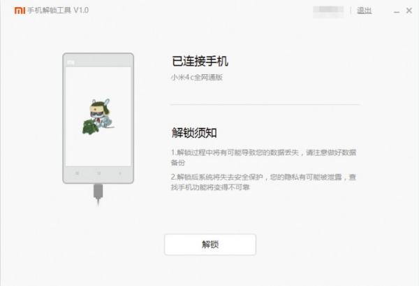 3. 打开解锁工具,数据线链接手机和电脑,点击“解锁手机”