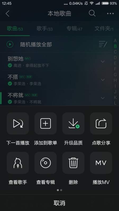 3.点击想要删除的歌曲,点击歌曲名字最右边的符号;