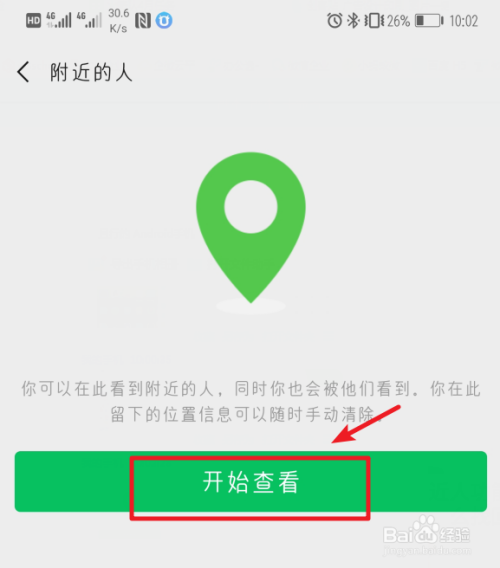 点击该选项进入后,选择开始查看,就可以查看附近的人。