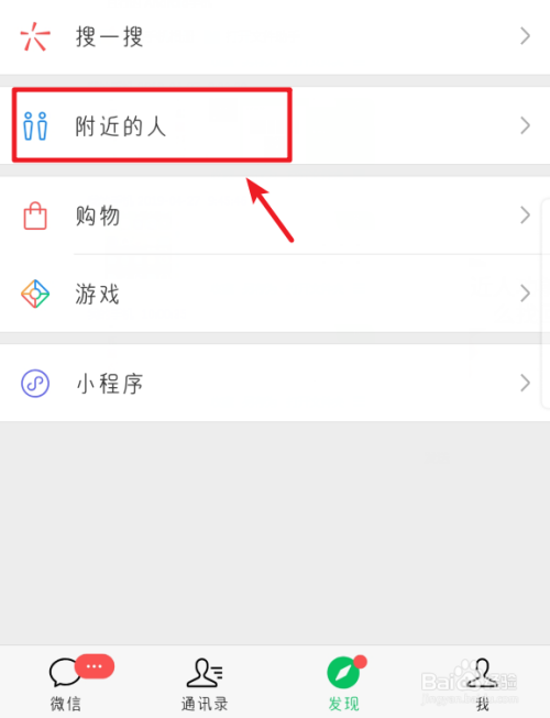 打开后,回到微信的发现界面,就可以看到附近的人的选项。