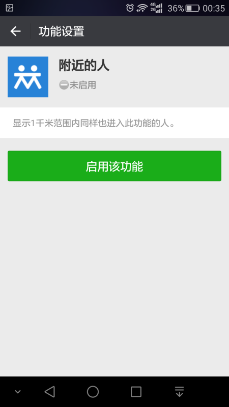 2.在未启用的功能里找到附近的人点击进入,进入后点击启用该功能即可开启附近的人功能。