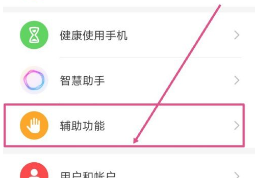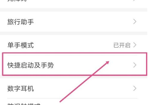 3、点击辅助功能,如下图,看到快捷启动及手势。