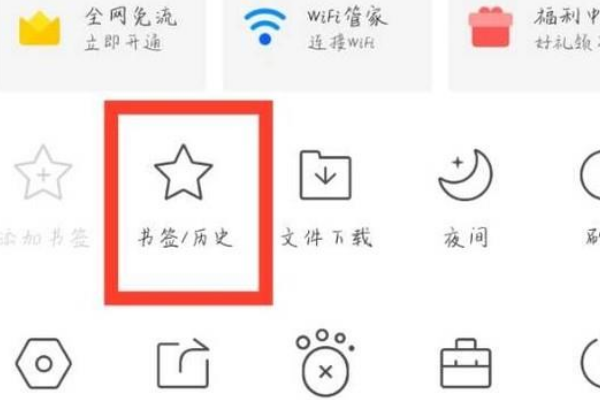 3、然后需要点击第一排有五角星的图标,即“书签/历史”。