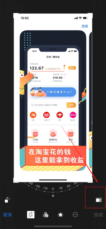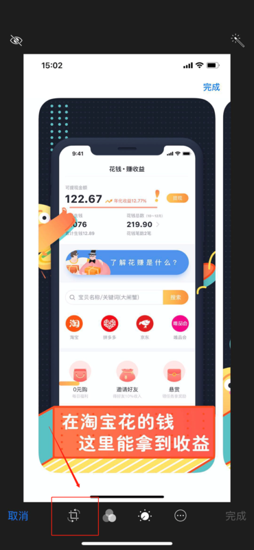 5、需要拖动照片上的裁剪框,需要将照片裁剪到合适尺寸大小后,点击完成即可。