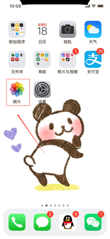 1、打开手机,在主桌面上找到“照片”这个软件,进入到相册界面。