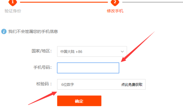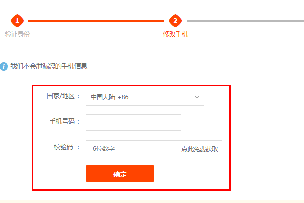 (7)输入修改的手机号输入校验码点击确定。
