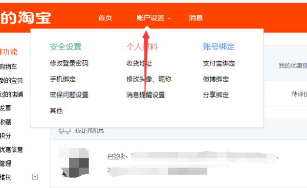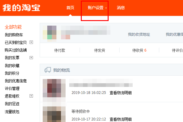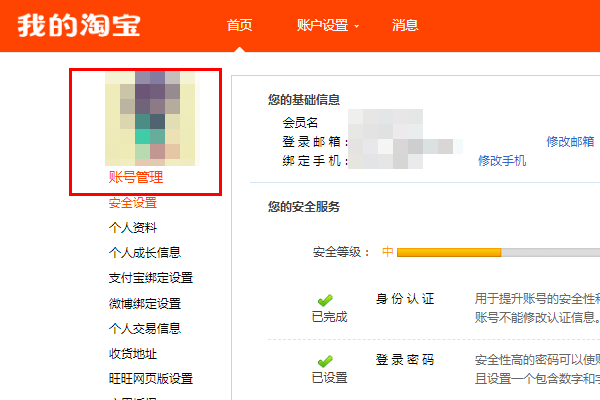 2、在我的淘宝页面有一个“账户设置”按钮,点击“账户设置”;