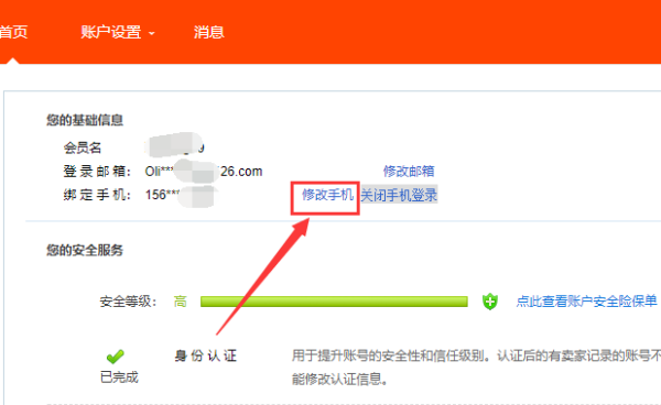3、在账户设置页面可以看到你的账户信息,包括你的手机号码和登录名,点击手机号码后面的修改手机选项;
