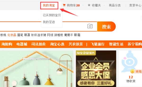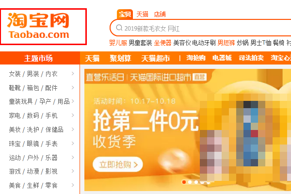 (1)进入淘宝网首页。