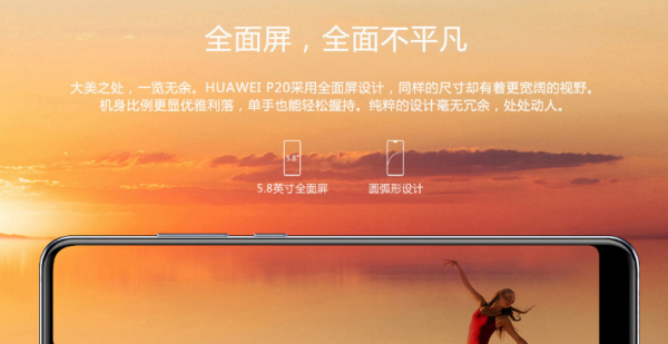 华为P20采用5.8英寸LCD屏幕,分辨率为FHD+ 1080 x 2244 像素;