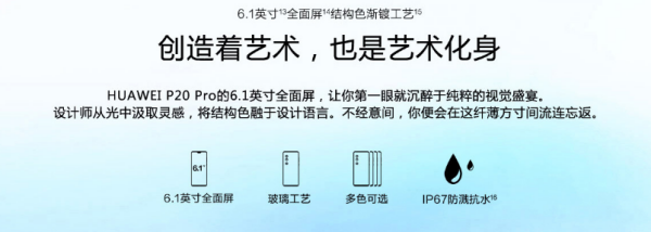 华为P20 Pro采用6.1英寸OLED屏幕,分辨率为FHD+ 1080 x 2240 像素。