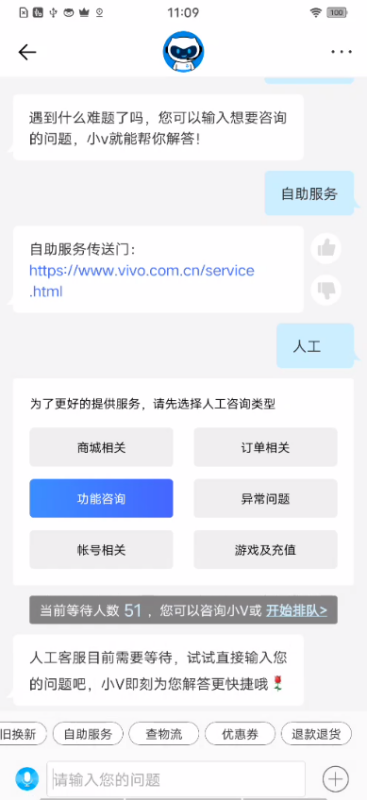 若以上设置找不到想要的功能选项,可进入vivo官网--我的--在线客服--输入人工,咨询在线客服。