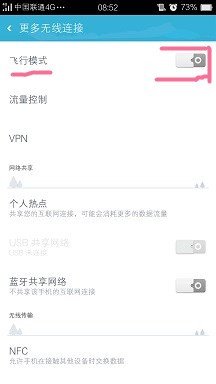 4.开启后,如下图所示过后,再次关闭飞行模式的选项。