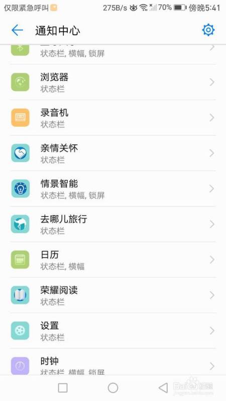 现在可以看到有个“通知和状态栏”选项,直接点击进入该选项,进行下面的设置