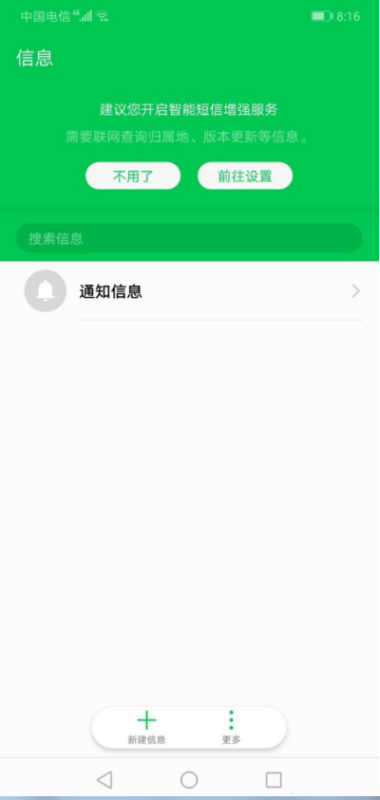 第一步、点击华为手机的短信图标进行设置。