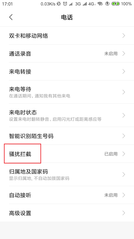 第三步、点击骚扰拦截。