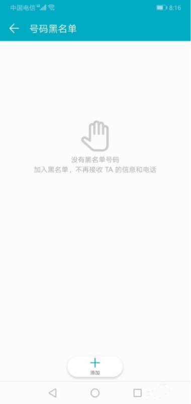 第六步、进入号码黑名单界面,就可以查看黑名单了。因为我的手机没有黑名单,如果有黑名单号码,就可以查看到具体的加入黑名单的号码了。