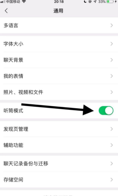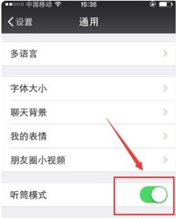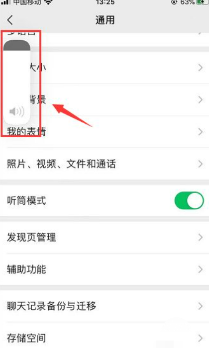 在通用里面,看到里面有一个听筒模式打开了,把听筒模式关闭,然后再回去看看,语音通话声音就正常了。