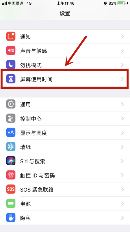 2、进入【设置】后选择【屏幕使用时间】设置。