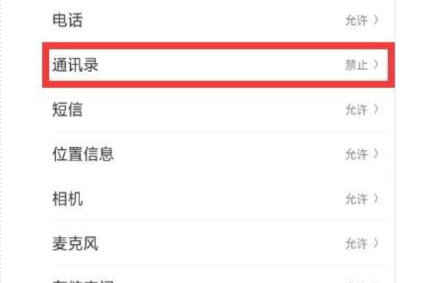 以小米手机为例, 1. 打开【安全中心】,进入【授权管理】。 2. 选择【应用权限管理】。 3. 选择【应用管理】。 4. 在应用列表中找到微信,点击进入。 5. 在权限列表中找到【读取联系人】。 6. 点击【读取联系人】,在下方弹出来的选项中选择“允许”即可。 扩展资料: 安卓应用管理,便捷,实用,傻瓜式的手机管理专家。简洁的界面,方便的操作,实用的功能,都是你日常生活必不可少的助手。 一键安装:还在为那些下载后找不到的安装包发愁吗? 试试一键安装,找出你手机里所有已下载的应用。 空间瘦身:已经安装的应用,那些还占用你空间的安装包,一键清除,立刻释放您的手机冗余空间; 一键卸载:桌面卸载应用苹果手机通讯录权限设置在哪里