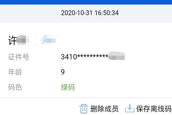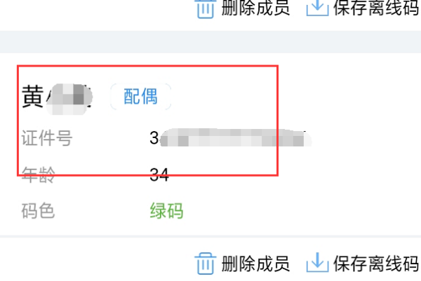 6、在出现的页面中可以看到家庭成员的健康码,选中需要删除的健康码点击删除成员。