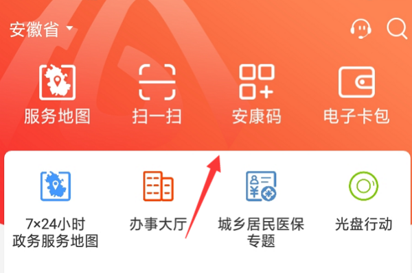 4、页面跳转以后登录进入到皖事通APP首页,点击上方的安康码进入。