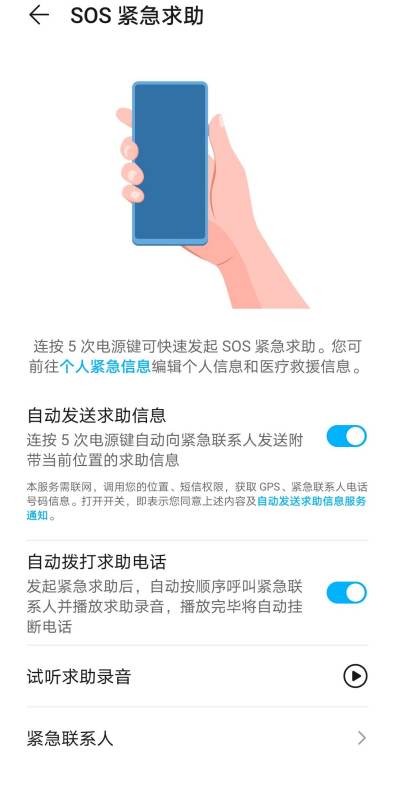 这个功能能够把手机通讯录联系人设置成紧急联系人。就是说自己遇到危险时按照手机上的说明去操作,就可以自动给联系人发送自己当前的定位,在几分钟后手机会自动拨打他的电话告知他你有危险并且不方便接电话,而你刚好被她设置成紧急联系人。