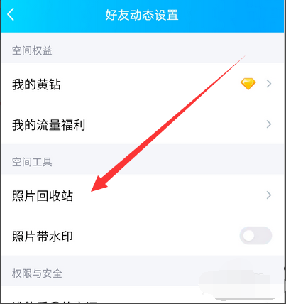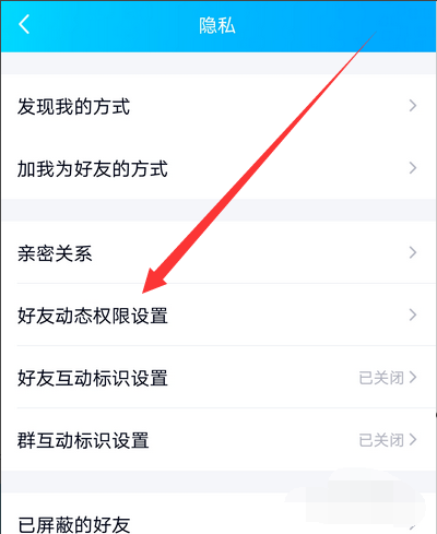 6、打开之后点击选项好友动态权限设置。