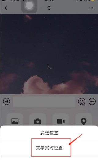 7、位置选项有“发送位置”和“共享实时位置”,选择“共享实时位置”。