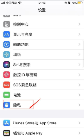 1、打开苹果手机的“设置”,进入设置内的“隐私”。如下图所示: