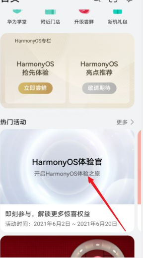 2、点击HarmonyOS升级体验活动,如下图所示: