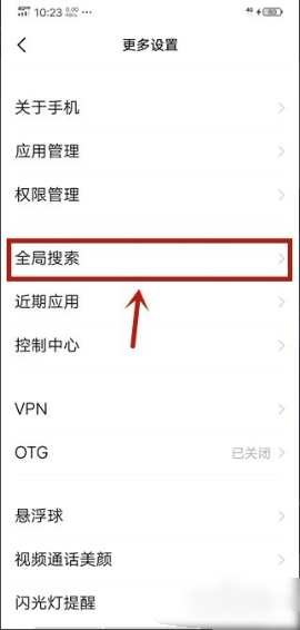 3、进入更多设置之后,点击进入全局搜索,如图所示。